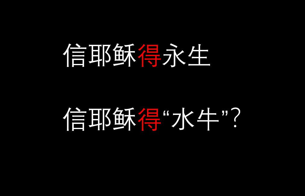 “永生”与“水牛”之差,当然是天地之别。而很多人却只愿意抓住看得见的、短暂的、终究要朽坏的蝇头小利,却不愿意去追求那看不见的、但却是永恒的、永不朽坏的宝贵生命。真是何等可惜!